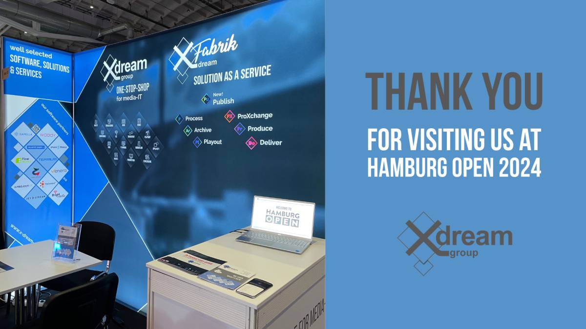 We would like to invite you to visit x-dream-group at the Hamburg Open 2024 in the Congress Halle Hamburg on January 17th and 18th. At stand 127, we will present innovative, well-developed, and affordable software solutions spanning almost all possible post-production, broadcasting, news publishing, and VOD scenarios.