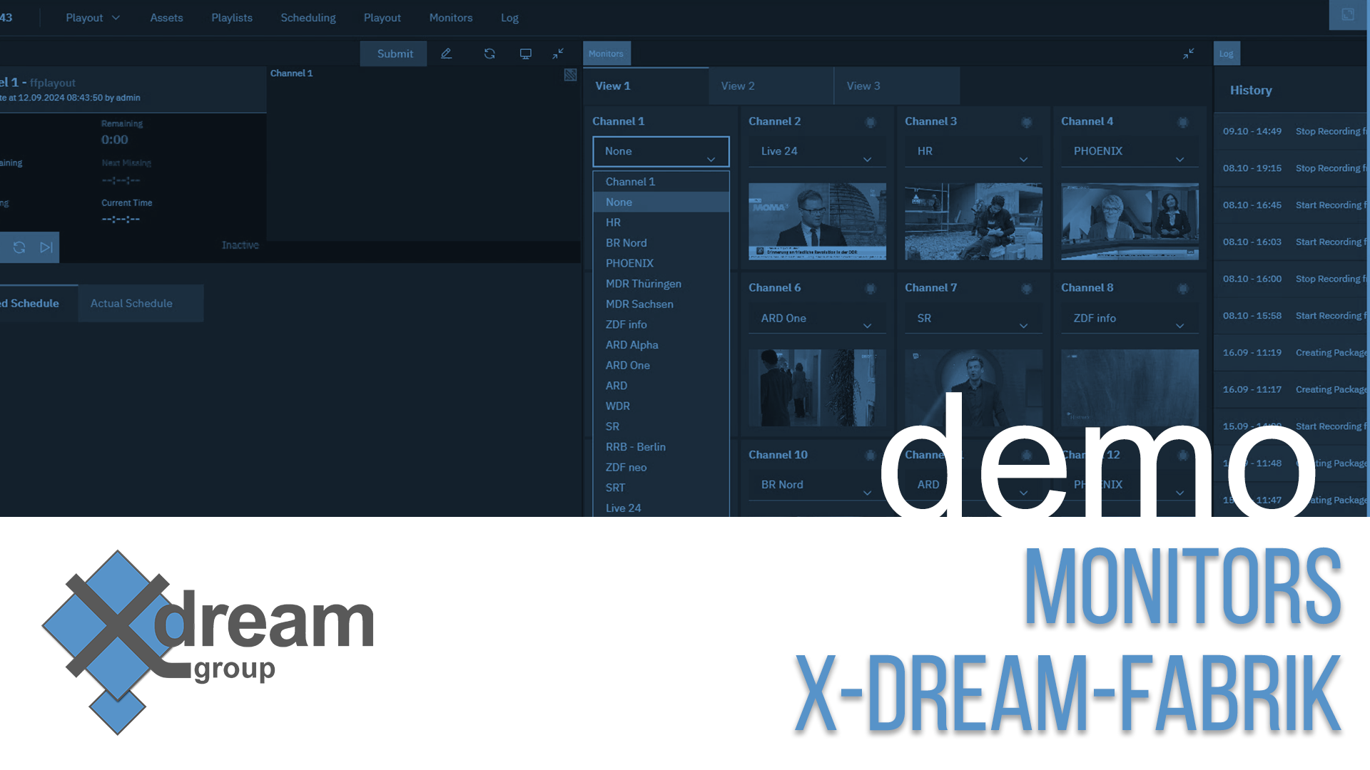 x-dream-Fabrik PLAYOUT is made to monetize your archive content through live programming. This includes individual media assets as well as series, seasons and episodes. PLAYOUT is the combination of linear program scheduling, the actual playout and program monitoring.